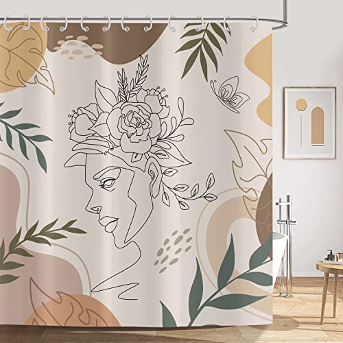ASDCXZ Tenda da doccia stile boho, 180 x 180 cm, moderna, astratta, arte da donna, con fiore, foglie beige, lavabile, in poliestere, impermeabile, per vasca da bagno con 12 ganci