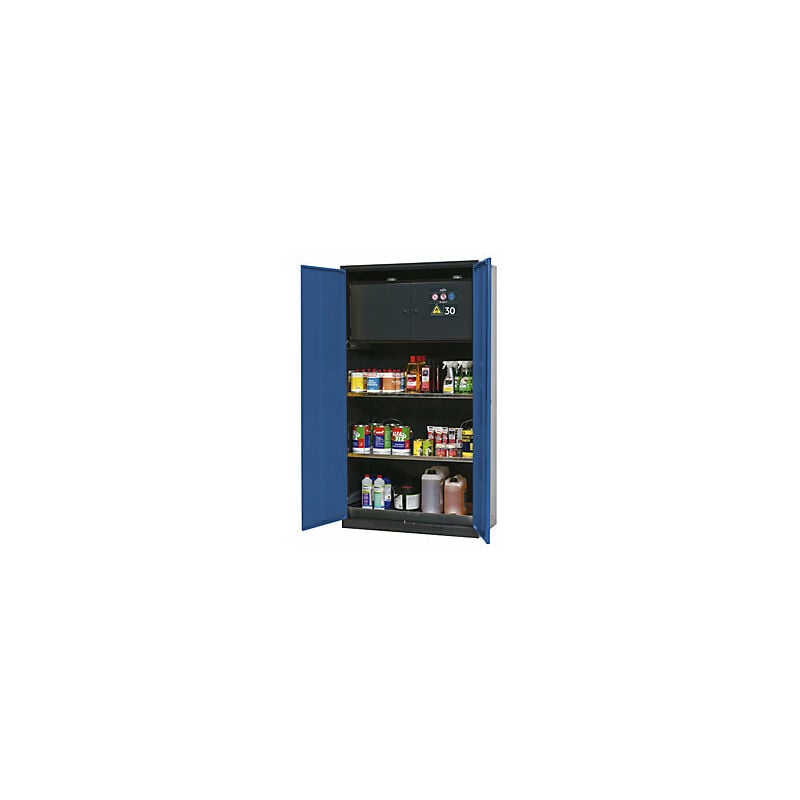 L'armadio per sostanze chimiche con armadietto per sostanze pericolose è il prodotto ideale per lo stoccaggio in sicurezza di liquidi inquinanti e sostanze velenose negli ambienti di lavoro. Realizzato in resistente lamiera d'acciaio, con dimensioni di 1950x1055x520 mm, offre due ripiani regolabili con una portata di 100 kg ciascuno e una vasca di raccolta da 33 litri. Dotato di contenitore antincendio per sostanze pericolose e ante a chiusura automatica, garantisce la massima sicurezza grazie alla conformità alla normativa vigente. Un prodotto essenziale per un ambiente di lavoro sicuro e organizzato.