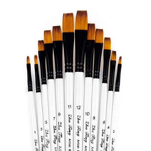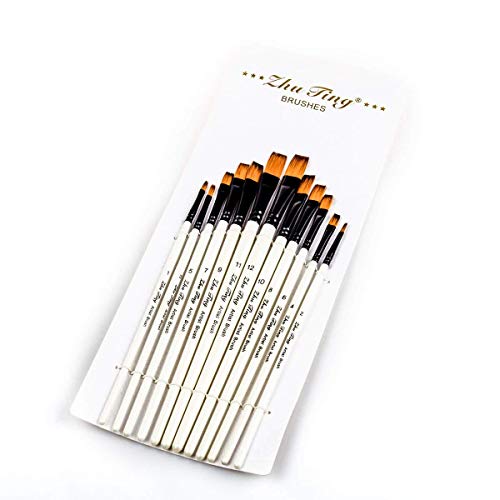 ASelected - Set di 12 pennelli piatti per pittura del viso, per acquerelli, olio, acrilico, pittura su roccia e viso, colore: bianco