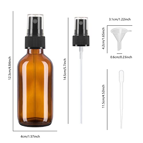 2 flaconi spray in vetro ambrato,4 spruzzatori a nebbia nera,1 imbuto,1 contagocce.