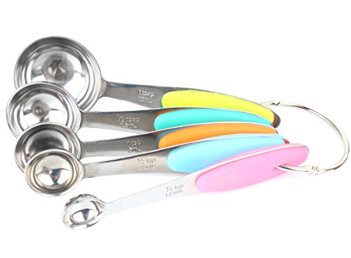Cucchiai dosatori in 5 misure - I cucchiai dosatori Asgii sono disponibili in 5 misure, 1/4, 1/2, 1, 1/2, 1 cucchiaio, per aiutarvi a misurare le vostre spezie comodamente. Queste misure equivalgono a 1,25 ml, 2,5 ml, 5 ml, 7,5 ml e 15 ml. I cucchiai dosatori Asgii evitano che le vostre spezie esotiche siano contaminate dall'umidità delle dita. La forma dei cucchiaini rende facile scavare all'interno dei barattolini delle spezie.