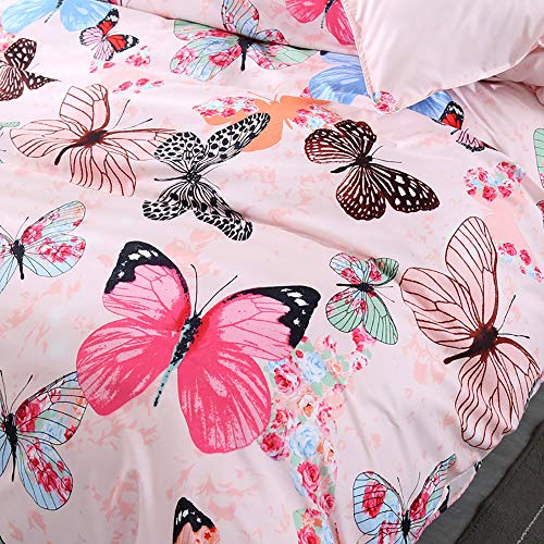 AShanlan Biancheria da letto per bambine, rosa, con farfalla, 135 x 200 cm, biancheria da letto per bambini, 100% microfibra, copripiumino con federa 80 x 80 cm