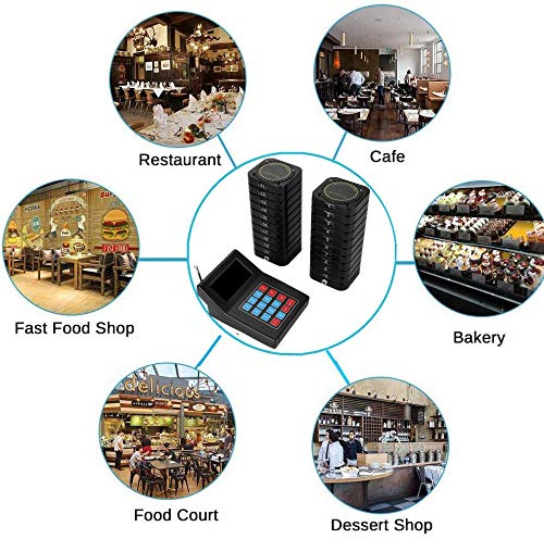 ASHATA Cercapersone Wireless con Sistema, 433,92 MHz Sistema Chiamata Ospite Wireless, Chiamata Ospite Wireless Sistema Cliente 20 Ricevitore Sistema Cercapersone per Ristorante Caffetteria(EU)