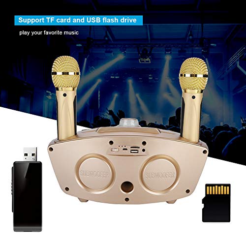 ASHATA Impianto Karaoke, Sistema Karaoke Altoparlante Stereo Bluetooth Senza Fili, Sistema Home Sound Home KTV Player 2 Microfono, Supporta Ingresso AUX(Oro)