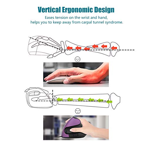 ASHATA Mouse Verticale Ergonomico,Verticale Mouse Ottico Ergonomico Verticale, Mouse Ottico Verticale con Cavo USB Portatile 800/1200/1600/3200 DPI 6 Pulsanti, per Notebook PC/Laptop ECC.(Viola)