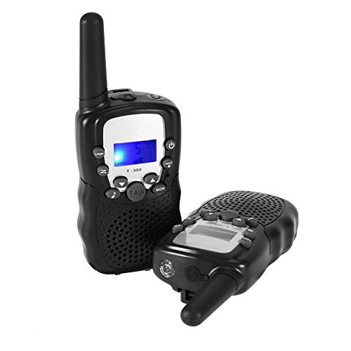 ASHATA 2 Pezzi Walkie Talkies per Bambini Mini Portatile a Lungo Raggio (Fino a 3 km) Bambini Walky Talky Radio a Due Vie multicanale con Lampada a LED Torcia elettrica sulla Parte Superiore (Nero)