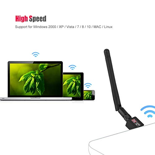 ASHATA Scheda di Rete WiFi USB, 300 Mbps Scheda di Rete Wireless USB 2.0 Adattatore WiFi Dongle Transceiver Segnale 2.4Ghz, Dongle USB Adattatore USB WiFi per Windows 2000/XP/Vista/7/8/10/Linux