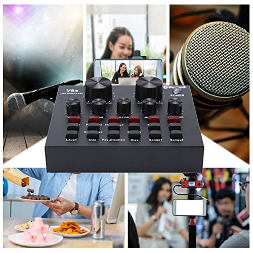 ASHATA Schede Audio Esterne, V8S Live Broadcast Sound Card Audio DJ Mixer, Cellulare USB Host Multifunzione Portable Live Sound Card Computer per Karaoke Computer Registrazione Live