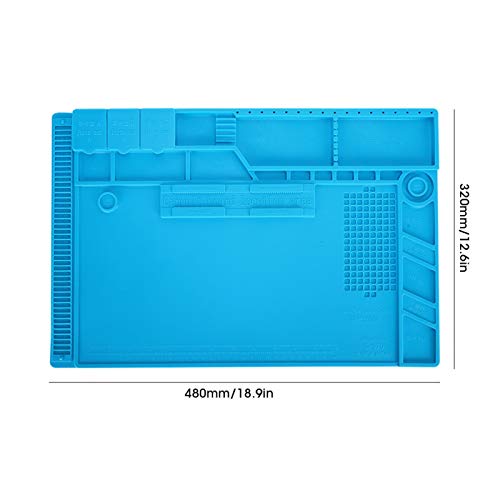 ASHATA Tappetino per riparazioni in Silicone, Isolamento Termico 18,9x12,6 Pollici Pad in Silicone Resistente alle Alte Temperature con Righello in Scala Magnetica e Posizione della Vite