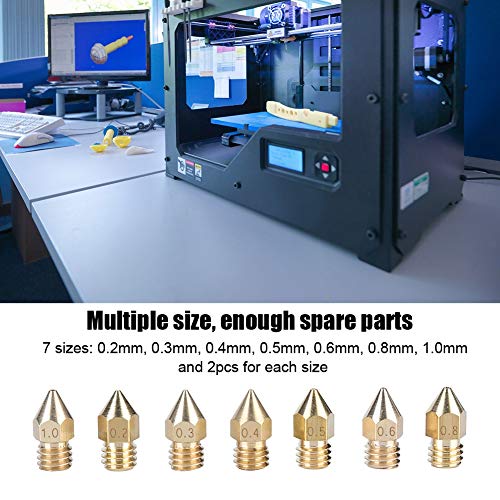 ASHATA Ugello in Ottone per Estrusore Stampante 3D, 14PCS 7 Dimensioni Stampante 3D Parti estrusore Ottone Testina di Stampa ugello per Anet A8, Creality CR-10, Tarantula Tevo, MK8 Makerbot