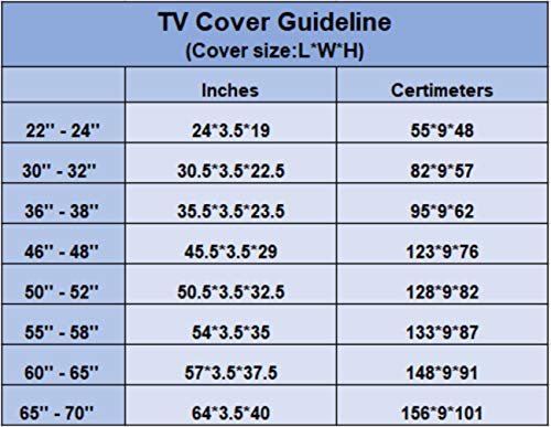 Buona protezione: progettata per proteggere il televisore da pioggia, sole e polvere. Il velcro intorno ai bordi sul fondo protegge la copertura quando il vento si alza in modo da poter essere sicuri che il televisore sia asciutto e pulito.
