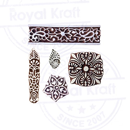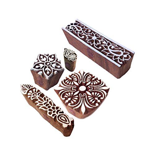 Asiatico Forma Piazza e Floreale Legno Stampa Timbri (Set di 5)
