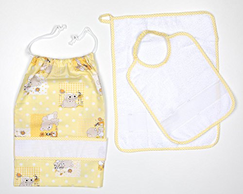 Set asilo orsetti da ricamare colore giallo (sacca asilo, bavaglia e salvietta)