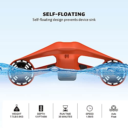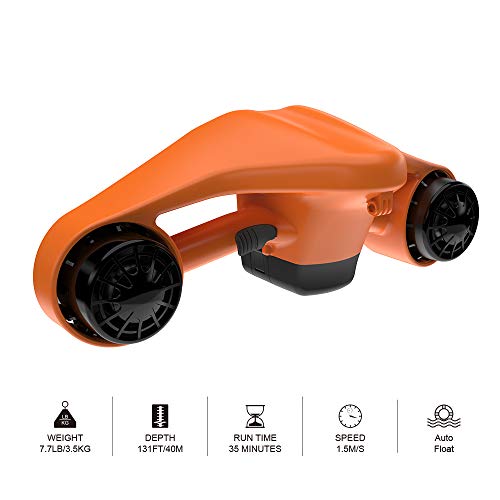 DOPPIO MOTORE: il doppio motore da 600 W rilascia 19,84 libbre di spinta per esplorare il mondo sottomarino di 40 m. Alimentato da una batteria ricaricabile agli ioni di litio, è ecologico e sicuro. e caricare 2-3 ore di lavoro per 35 minuti durante il normale utilizzo.