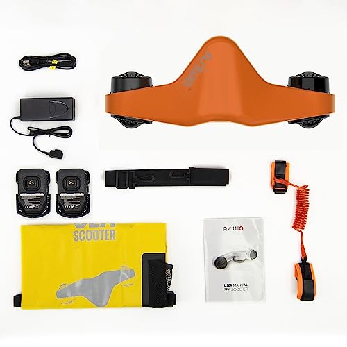 Asiwo Scooter Subacqueo Elettrico Seascooter con 2 batterie Action Camera Mount - Scooter Marino a Doppio Motore Impermeabile per Immersioni subacquee Nuoto Snorkeling (2 batterie Orange)
