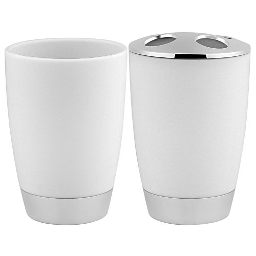 Asixx Tuta da Bagno, 4 Pezzi/Set Accessori da Bagno Completo Include Tazza spazzolino, Dispenser di Sapone e Porta spazzolino da Denti per Mettere 2 spazzolini da Denti e 1 dentifricio(Bianca)