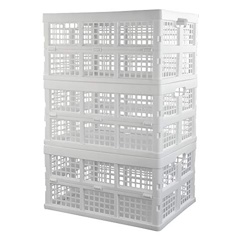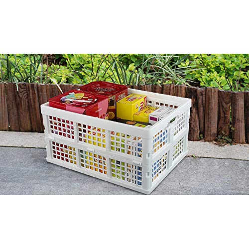 Asking Cassa impilabile in plastica bianca da 30 litri, cestello portaoggetti pieghevole, set di 3