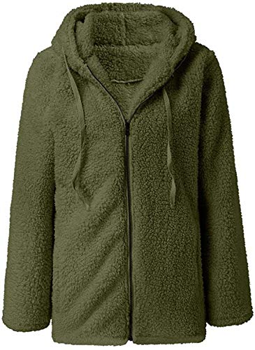 ASKSA Felpa casual in pile sherpa con cappuccio e zip intera in finta fuzzy a maniche lunghe, Verde militare, L