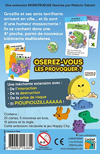 Asmodee Happy City Cocktail Games - Espansione: Grozilla, giochi da tavolo, giochi di carte, gioco per famiglie, gioco per bambini a partire dai 10 anni, 2-5 giocatori, 30 min, versione francese