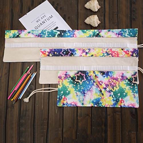 Asnlove, Astuccio arrotolabile in tela di lino, per matite, 36 fori, matite colorate, matite per make-up, scuola, ufficio, arte 72 Löcher Cielo stellato