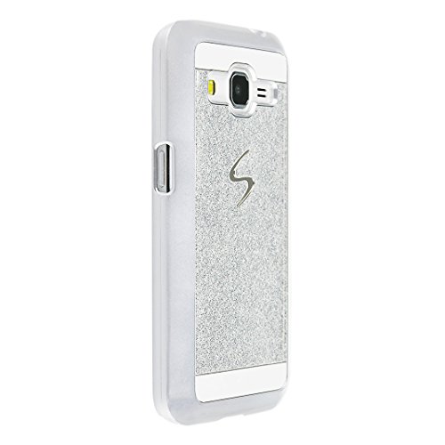 Asnlove per Samsung Galaxy Core Prime G360 G360F Brillantini Cover custodia bumper plastica rigida policarbonato bling brillante case posteriore caso brillare clear leggero protettiva smartphone skin housing shell-Argento