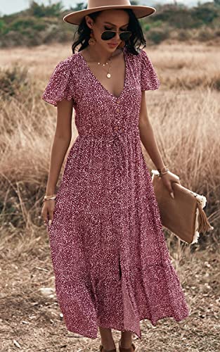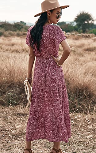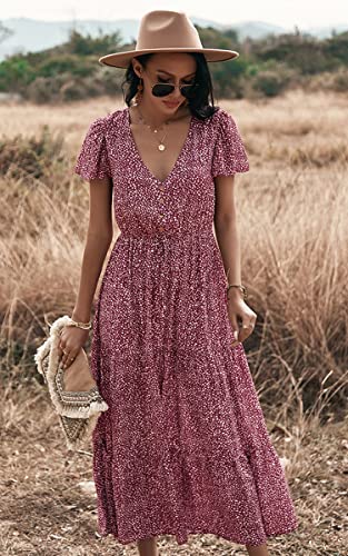 Stile unico: abiti lunghi belli e leggeri. Il vestito boho floreale dispone di un classico taglio ad A, un profondo scollo a V e una lunghezza maxi. Il vestito estivo a maniche corte offre una sensazione comoda e rilassata.