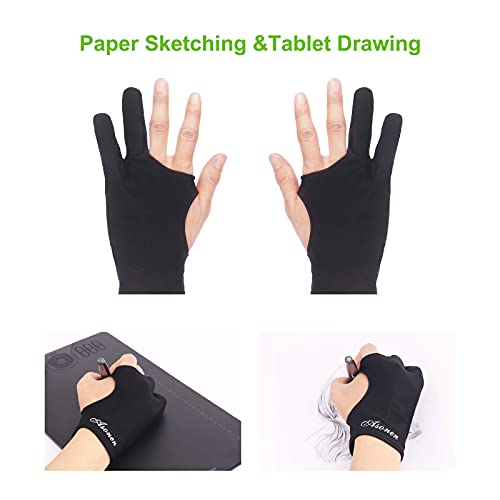 Asonen - Guanti da artista per disegno, confezione da 2, a tre strati fissi, anti-tocco, guanti con due dita per schizzi, inchiostrazione, colorazione e disegno digitale su tablet grafici, universali