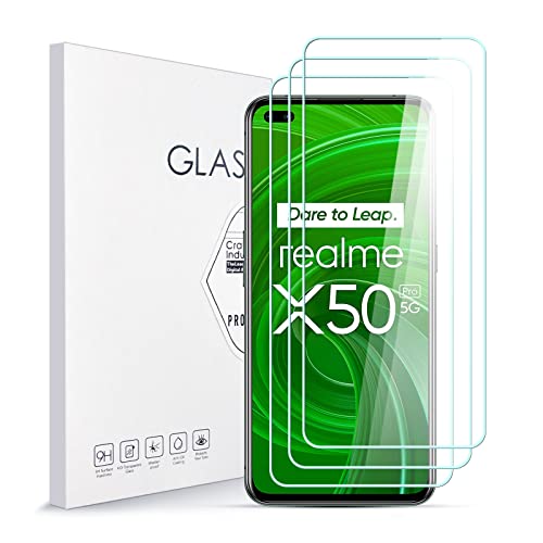 ultra-trasparente: schermo in vetro temperato protettivo per Realme X50 Pro, pellicola in vetro multistrato temperato spesso 0,3 mm con durezza 9H, rivestimento anti-impronta, rivestimento oleorepellente che resiste alle macchie, mantiene uno schermo HD duraturo.