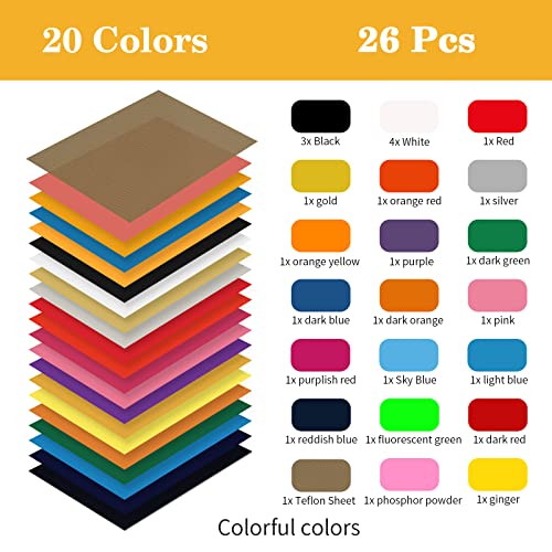 ★ Materiale di alta qualità e una vasta gamma di colori - il Vinile Termoadesivo per Tessuti è fatto di poliuretano ecologico di alta qualità con un'elevata elasticità e morbidezza. Disponibile in 20 colori popolari, formato A4 30,5 cm * 25 cm, 26 fogli di carta transfer per il tuo design personalizzato. Personalizza le tue camicie, borse di stoffa, cappelli e cuscini, scarpe, calze, abbigliamento sportivo, grembiuli, ecc.