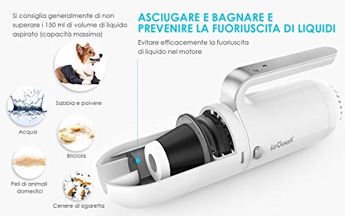 Aspirapolvere per Auto, ieGeek 8000Pa Aspirapolvere a Mano Potente 130W DC 12V, Aspirapolvere Secco e Umido, con Filtro HEPA in Acciaio Inossidabile, Forte per Pulizia Auto, 3 ugelli