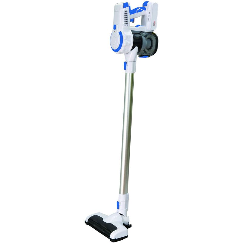 SCOPA WIRELESS A BATTERIA 'FASTER' MELCHIONI Scopa elettrica ricaricabile senza fili, motore brushless 200W, batteria al litio 22.2V. Caratteristiche 2 in 1: aspirapolvere e aspirabriciole senza sacchetto Motore potente DC brushless: 2 velocità regolabili 18 kpa Spazzola motorizzata con luce e girevole fino a 180° Indicatore led di funzionamento e ricarica Spegnimento automatico di sicurezza in caso di bassa tensione Supporto a parete salvaspazio Breve tempo di ricarica di sole 4 ore Batteria: 22.2V al litio Autonomia: funzione standard fino a 35 min/funzione TURBO fino a 15 min Capacità serbatoio: 0,5L Accessori: spazzola motorizzata con rullo a setole e luci, tubo, supporto a parete, bocchetta a lancia, bocchetta per tappezzeria, adattatore di ricarica Alimentazione: 100-240V ~ 50/60Hz Potenza: 200 W Colore: bianco/blu