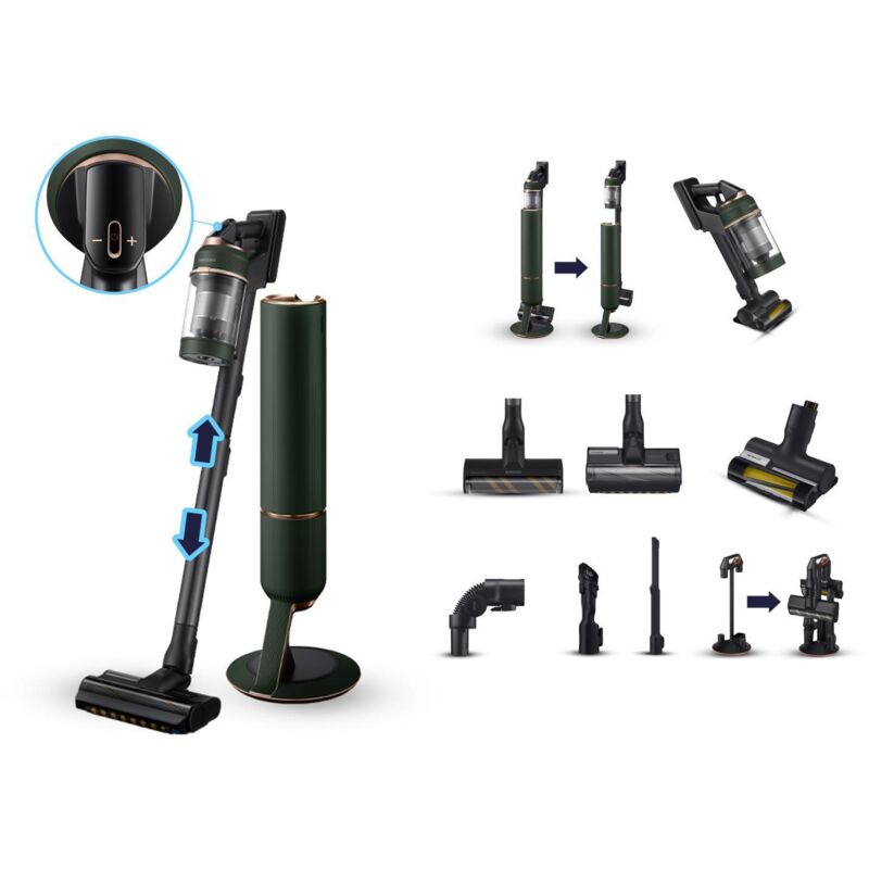 Samsung BESPOKE Jet complete extra Scopa Elettrica Senza Filo Senza Sacchetto Potenza 210 watt woody green. Tipo di contenitore della polvere: Senza sacchetto Colore del prodotto: Nero Capacità del contenitore: 0 5 L. Tipo di pulizia: Secco Metodo di separazione dello sporco: Ciclonico Superficie di pulizia: Pavimento Tappeto Superfici rigide Gradini Tappezzeria. Alimentazione: Batteria Massima potenza in entrata: 580 W Potenza motore: 210 W. Larghezza imballo: 408 mm Profondità imballo: 493 mm Altezza imballo: 921 mm. Larghezza: 250 mm Profondità: 210 mm Altezza: 1000 mmSvuota e ricarica in un unico gesto Fino a 2 ore di autonomia Evita il contatto con la polvere dall'inizio alla fine. All-in-One Clean Station™ Svuotare e ricaricare il tuo aspirapolvere non è mai stato così semplice. La All-in-One Clean Station™ sfrutta la tecnologia Air Pulse per svuotare efficacemente* il contenitore e ricaricare al contempo la batteria. In più trattiene fino al 99 999% delle polveri sottili **