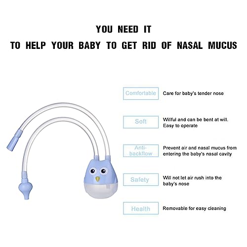 ✈ Design carino: Aspiratore Nasale Manuale Neonati è un gufo animato con colori vivaci per attirare l'attenzione del bambino. Silicone aspiratore nasale ha un design antireflusso, il muco nasale non scorre all'indietro e non sono necessari filtri o accessori aggiuntivi.