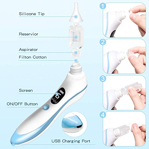 Aspiratore nasale neonato, aspiratore nasale elettrico con 6 livelli di aspirazione regolabili e 4 punte in silicone, Aspiratore nasale con ricarica USB per neonati e bambini piccoli (XQQ009)