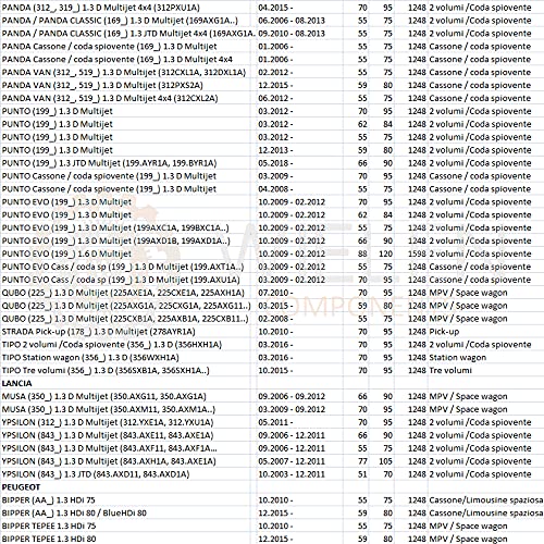 Compatibile con: ALFA ROMEO MITO, CITROËN NEMO, FIAT 500, DOBLO, FIORINO, GRANDE PUNTO, IDEA, LINEA, PANDA, PUNTO, QUBO, STRADA, TIPO, LANCIA MUSA YPSILON, PEUGEOT BIPPER 1.3 HDI