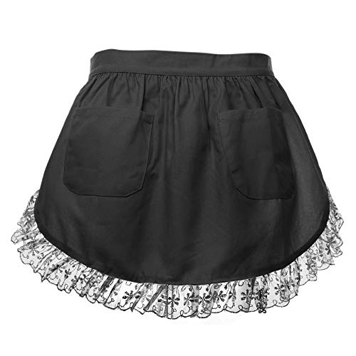 Aspire Grembiule da Cucina, Grembiule in vita per donna, Mezzo Grembiule in Cotone pizzo di Halloween con due Tasche, Costume da Cameriera
