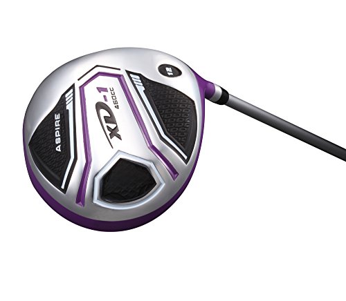 Aspire - Xd1: Set Di Mazze Da Golf Completo Per Donne Destre. Include Le Mazze Titanium Driver, S.S. Fairway, S.S. Hybrid, Ferri S.S. 6-Pw, Un Putter, Una Sacca Da Golf E 3 Coprimazze Destri Viola.