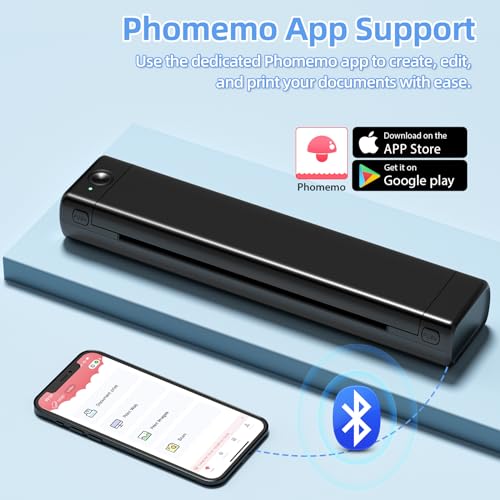 ASprink Stampante Portatile A4, M08f Stampante Termica Portatile Supporta Carta Termica A4 in Formato 8.27" X11.69", Compatibile con Android e iOS per Telefono e Laptop - Nero
