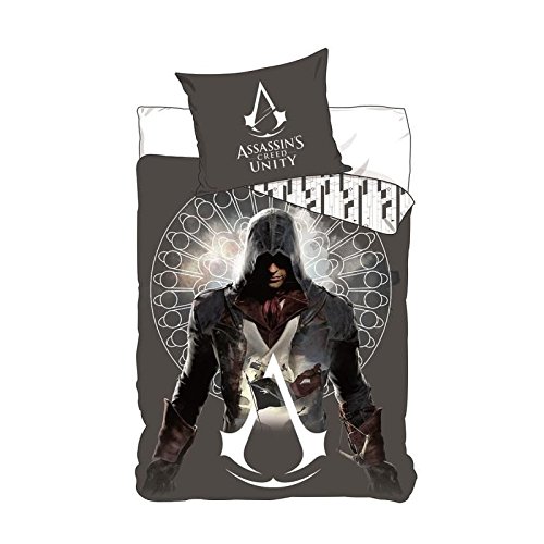 ASSASSIN CREED UNITY Parure de couette Microfibre - 1 housse de couette 140x200 cm + 1 taie d'oreiller 63x63 cm gris