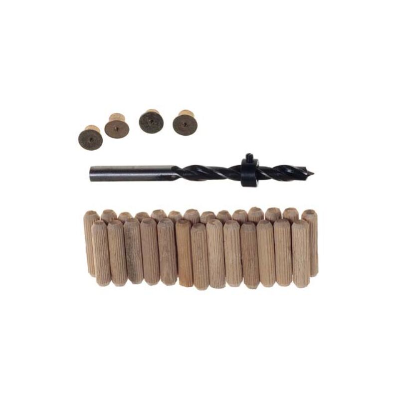 Kit assemblaggio pg (5 confezioni) 682.00 mm 8x35 cf=pz 31 kit con punta per trapano, boccola di arresto, spine a centrare e tasselli di legno. in blister.