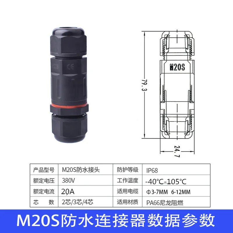 Assembled Waterproof Connector Outdoor Street Lamp Terminal M20S-2-3-4 Core Wire Intermediate Connector