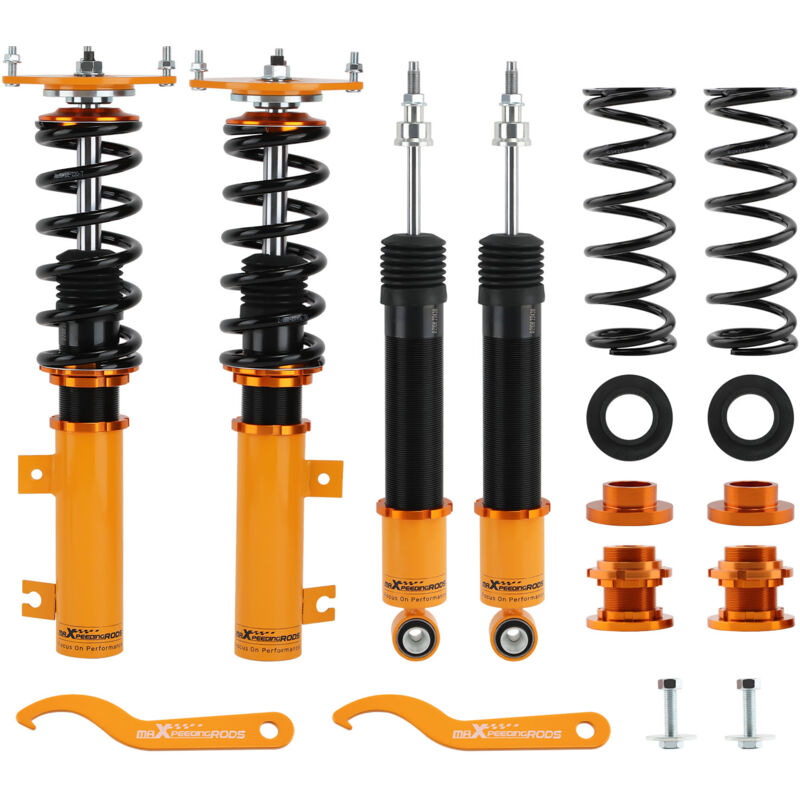 Application: for Volvo S70 1998-2000 for Volvo C70 1998-2001 for Volvo 850 1992-1997 including wagon Specifciation: Quantità: 2 pezzi anteriori + 2 pezzi posteriori Altezza regolabile: abbassamento 1" - 3" Ammortizzatore: non regolabile Tasso di molla anteriore: 7 kg/mm (392 libbre/pollici) Tasso di molla posteriore: 4 kg/mm (224 libbre/pollici) Piastra camber regolabile: NO Feature 1. Regolazione dell'altezza abbassata da 1" - 3" che consente un baricentro più basso e aggiunge anche una posizione più aggressiva 2. Tensione della molla di precarico regolabile for ridurre il movimento di scuotimento in una certa misura 3. Piastra di camber regolabile e supporto superiore a sfera for migliorare la risposta dello sterzo (for alcuni modelli) 4. Supporti superiori e armadietti in alluminio lavorato a CNC: resistenza eccellente e risparmio di peso 5. Supporti inferiori in acciaio for impieghi gravosi - Altamente durevoli e affidabili 6. Molla ad alta resistenza: testata continuamente