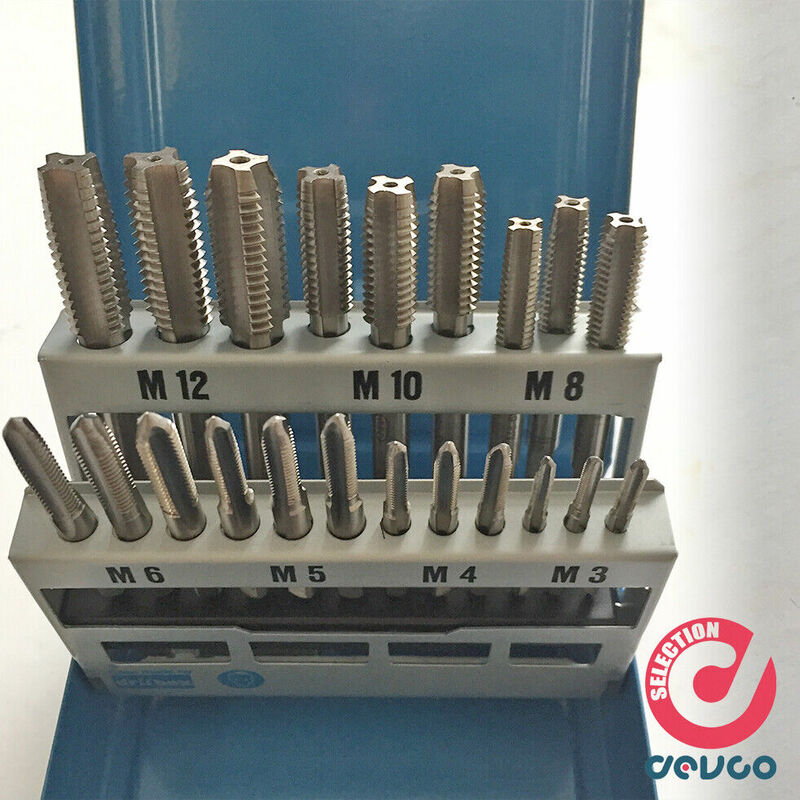 Per filettature Metriche ISO - Passo grossoTipo con maschi a manoPer filettare Ø 3 - 4 - 5 - 6 - 8 - 10 - 12 mmIn cassetta di lamiera (21 pezzi)
