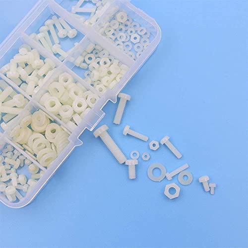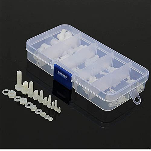 Kit di Assortimento di Viti, 150Pcs Set di Rondelle Esagonali, Dado a Vite in Nylon, Plastica Assortite di Rondelle, per Scheda di Circuito, Hardware Montaggio, con Scatola di Plastica (Bianca)