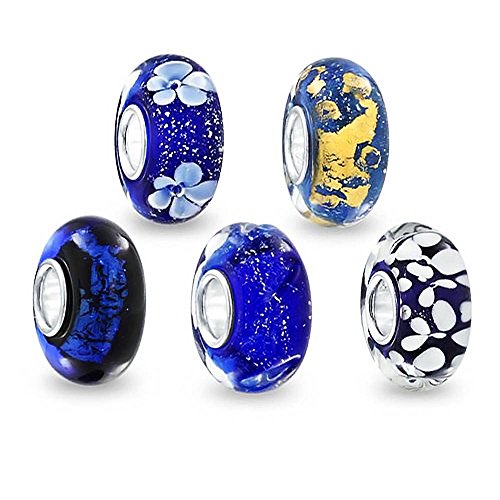 Assortimento Misto Di 6 Bundle Sfumature Traslucide Di Nero Blu Navy Argento Oro Foglia Di Murano Swirl Charm Bead Spacer Per Donne Nucleo In Argento Sterling .925 Si Adatta Al Bracciale Europeo
