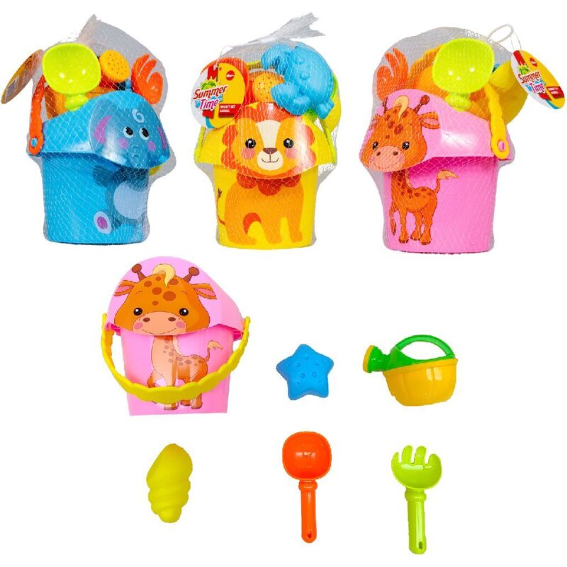 Rendi la giornata in spiaggia ancora più divertente con questo set da 7 secchielli Summertime. Il secchio ha la faccia di una giraffa, di un leone o di un elefante. Il set è composto da un secchio, un colino, 2 stampi per la sabbia, un rastrello, una pala e un annaffiatoio. Adatto a bambini dai 18 mesi. Non puoi scegliere, ma ricevi una versione casuale.