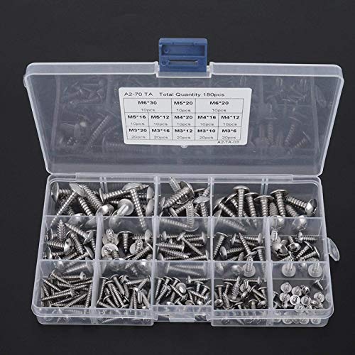 Assortimento di viti a testa tonda Set 180 pezzi Viti Phillips in acciaio inossidabile M3 M4 M5 M6 Viti autofilettanti Filettatura completa per uso domestico