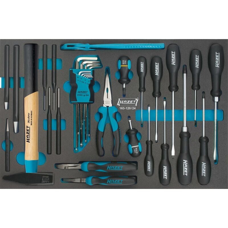 Safety-Insert-System HAZET (SIS) Made in Germany Presa di forza: Profilo intaglio a croce PH, Profilo ad intaglio, Profilo esagonale interno Dimensioni / Lunghezza: 519 mm x 342 mm Peso netto (kg): 3.7 kg Dimensione sistema di ordinamento: 3/3 (519 x 342 mm) Safety-Insert-System HAZET (SIS) Sistema di ordinamento perfetto - tutti gli utensili saldamente inseriti al loro posto Rapido controllo di completezza integrato - individuazione immediata dell'utensile mancante Infinite possibilità di combinazione Numero utensili: 24 Lunghezza (cavo) 519 Unità di uscita Kreuzschlitz Profil PH, Schlitz Profil, Innen Sechskant Profil Dimensioni dell'imballaggio 1 Contenuto della fornitura 730-3, 730-6, 746-1, 748B-3, 748B-4, 748B-5, 748B-6, 760-2, 801NK-55, 801NK-PH2, 803-25, 803-30, 803-35, 803-40, 803-65, 803-80, 803-PH1, 803-PH2, 803-PH3, 1802M-22, 1841MB-33, 1850M-22, 2105LG/9H, 2140-50