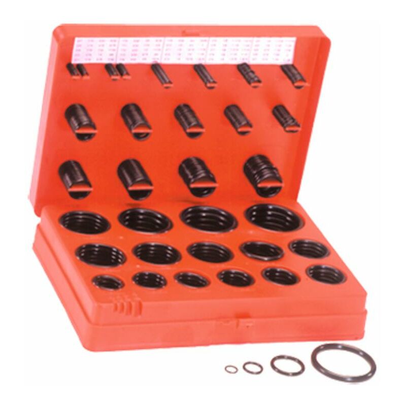 Assortimento O-Ring in pollici, composto da: 20 pezzi OR-006 Ø interno 1/8 Ø esterno 1/4 spessore 1/16, 20 pezzi OR-007 Ø interno 5/32 Ø esterno 9/32 spessore 1/16, 20 pezzi OR-008 Ø interno 3/16 Ø esterno 5/16 spessore 1/16, 20 pezzi OR-009 Ø interno 7/32 Ø esterno 11/32 spessore 1/16 20 pezzi OR-010 Ø interno 1/4 Ø esterno 3/8 spessore 1/16 20 pezzi OR-011 Ø interno 5/16 Ø esterno 7/16 spessore 1/16 20 pezzi OR-012 Ø interno 3/8 Ø esterno 1/2 spessore 1/16 13 pezzi OR-110 Ø interno 3/8 Ø esterno 9/16 spessore 3/32, 13 pezzi OR-111 Ø interno 7/16 Ø esterno 5/8 spessore 3/32, 13 pezzi OR-112 Ø interno 1/2 Ø esterno 11/16 spessore 3/32, 13 pezzi OR-113 Ø interno 9/16 Ø esterno 3/4 spessore 3/32, 13 pezzi OR-114 Ø interno 5/8 Ø esterno 13/16 spessore 3/32, 13 pezzi OR-115 Ø interno 11/16 Ø esterno 7/8 spessore 3/32 13 pezzi OR-116 Ø interno 3/4 Ø esterno 15/16 spessore 3/32 10 pezzi OR-210 Ø interno 3/4 Ø esterno 1 spessore 1/8 10 pezzi OR-211 Ø interno 13/16 Ø esterno 11/16 spessore
