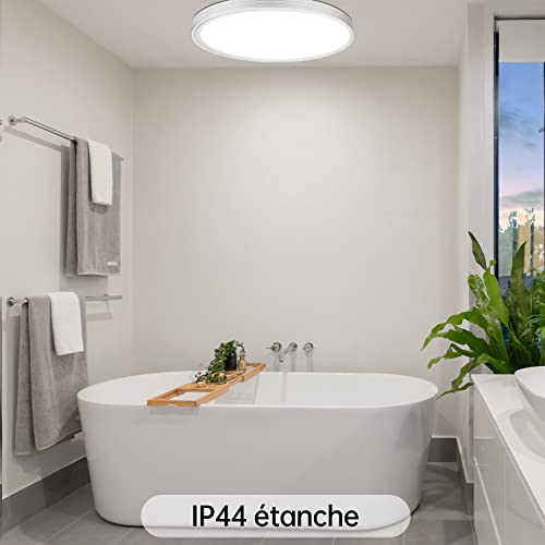 Asstikoo Plafoniera Led Telecomando, lampada da soffitto dimmerabile 24 W regolabile Ø30 cm 3000 K-6500 K, lampada da soffitto moderna, rotonda, 2400 lm, IP44, per camera da letto, soggiorno, cucina,